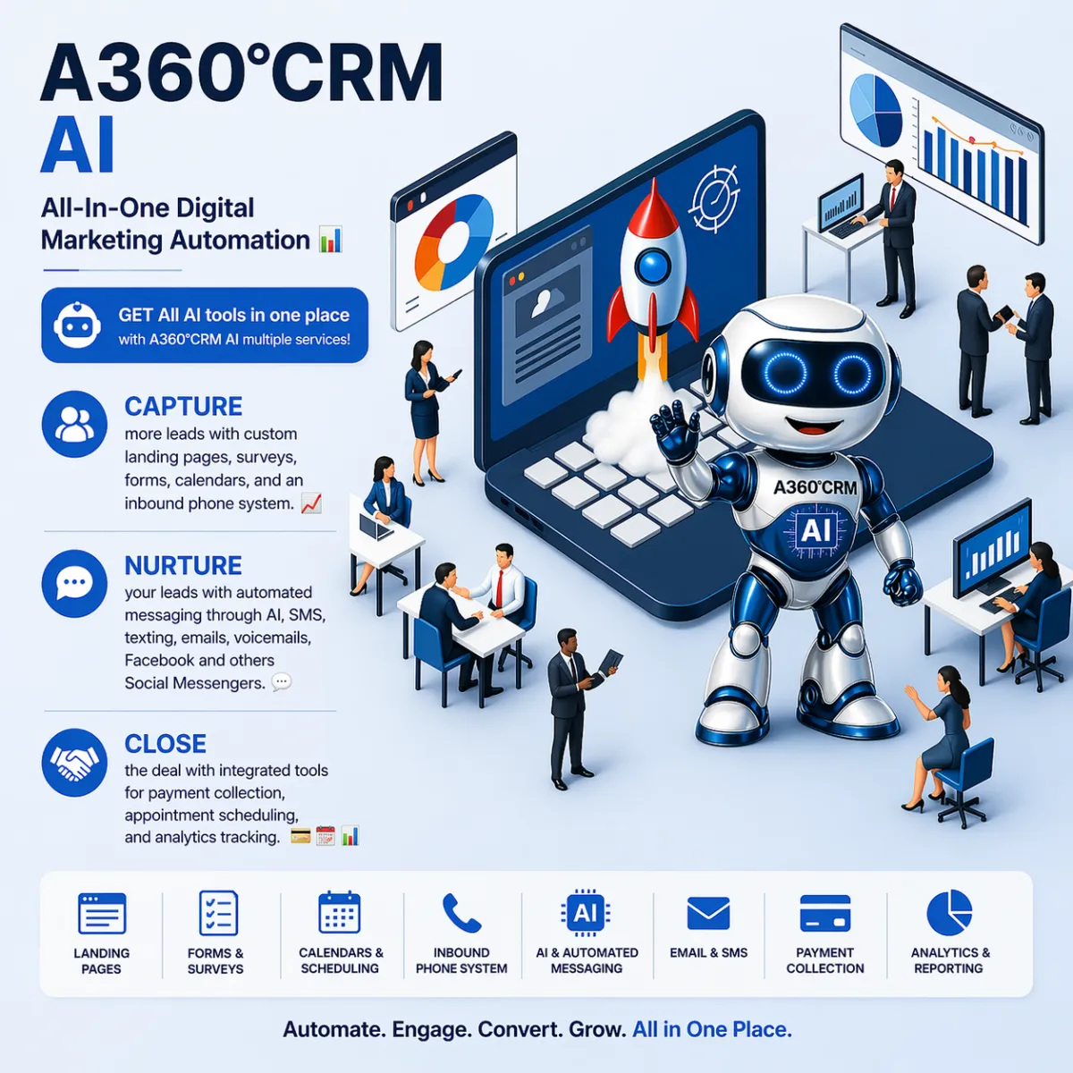 A360°CRM AI is your all-in-one system that answers, follows up, and converts leads automatically—turning more prospects into booked appointments and sales.